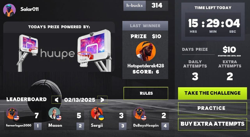 Think you're a good shooter? Try competing against all of the best shooters around the world in our mini hoop Daily Prize Competitions with live leaderboards 24/7.