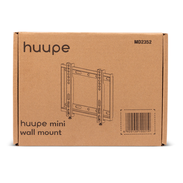 Second, if you don't have any doors that work OR you prefer to install on the wall like you would a TV, huupe sells wall mount kits separately that enable you to install on the wall just like you would a TV via VESA mount holes in the back of the huupe mini. You can do studded wall mount or anchor wall mount.